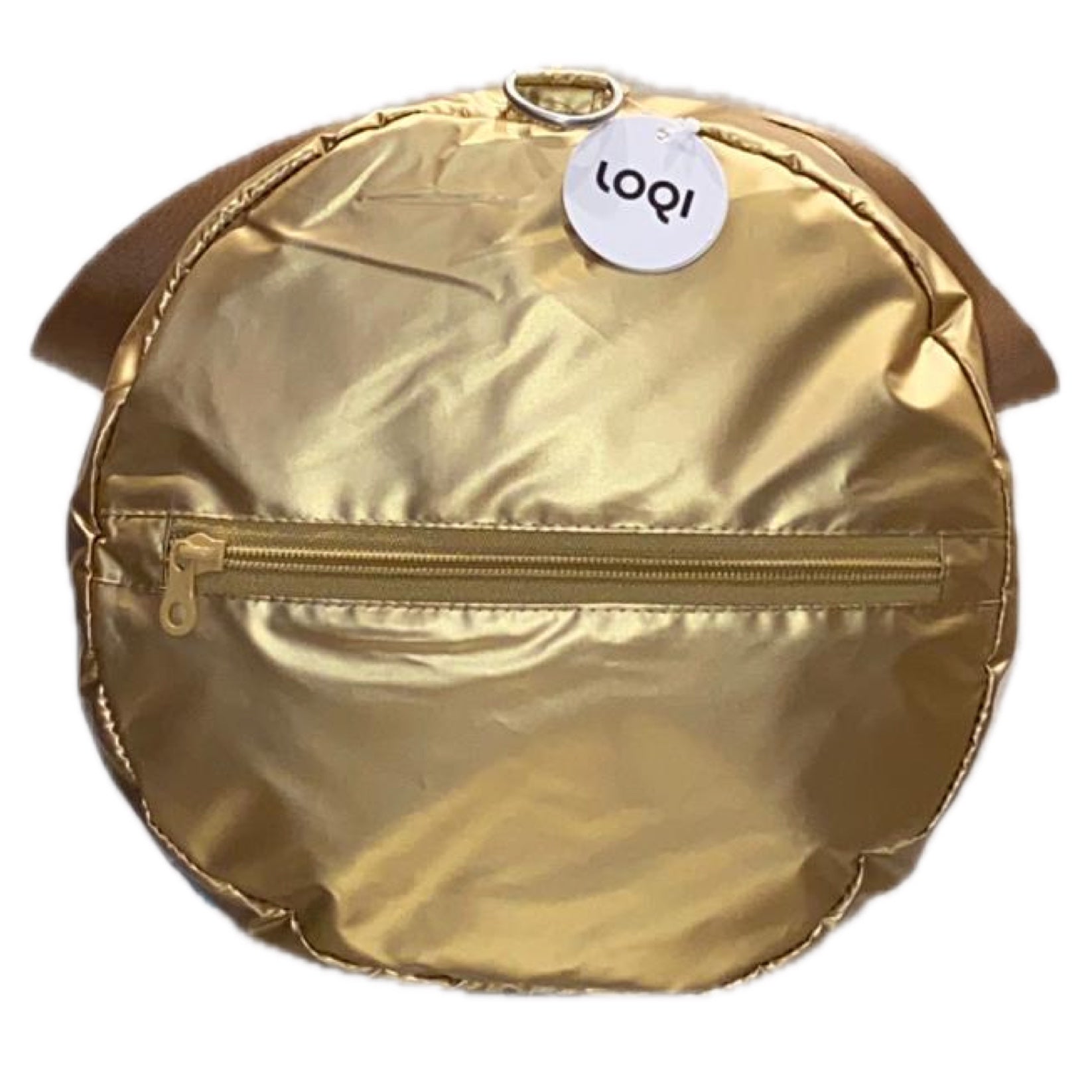 LOQI Metallic Gold è leggera e compatta, pesa 310 g e misura 25 × 50 × 25 cm. Ha manici da 27 cm e una tracolla rimovibile e regolabile 70-125 cm, oltre a una tasca esterna con cerniera da 20 cm per piccoli oggetti sempre a portata di mano.
